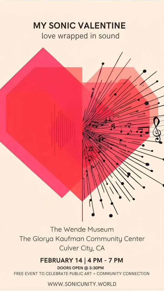 Presented by Sonic Unity, My Sonic Valentine: Love Wrapped in Sound is a free, immersive celebration blending live sound, vibroacoustic experiences, vocal toning, and sensory exploration across indoor and outdoor spaces at the Wende Museum.